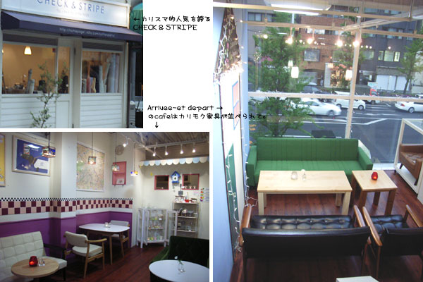 これは、[CHECK & STRIPE](ちくちく好きな方でしたら知らない方はいないです、ね。^^) [Arrivee-et Depart](カワイイ雑貨のお店です。↑の画像は2階のcafe部分のもの。雨が強くなり始めたころだったので、ここでお茶したかったのですが、残念ながらcafeのオープンは14時なのです。涙)
