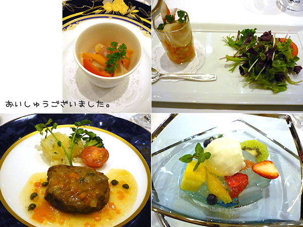 そんなわけで、なかなか泊まりたいトコと泊まれるトコが一致せず困ったのですが、今回は山のホテルにオジャマしました。^^ 晩ごはんは洋食にしたよー。・・・スープ撮り忘れちゃった。
