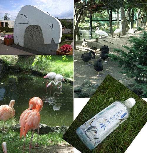 入園して最初は鳥たちが出迎えてくれます。^^ フラミンゴや白鳥黒鳥、カモなどが自由に泳いでいる姿を眺めながら進むと次はペンギン館があります。(ペンギンは人気館のひとつで、プラカード持ったおぢさんが行列の指示を出しています。)